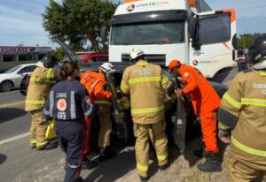 Com o impacto, a motorista do carro ficou presa às ferragens, sendo necessário o acionamento da unidade móvel do Serviço de Atendimento Móvel de Urgência (SAMU) e do Corpo de Bombeiros. Os militares utilizaram ferramentas de pressão para realizar o resgate da vítima. Até o momento, não há informações oficiais sobre o estado de saúde da condutora.