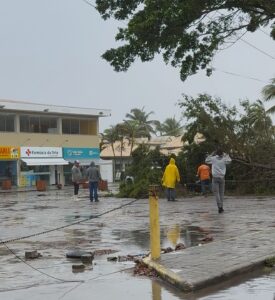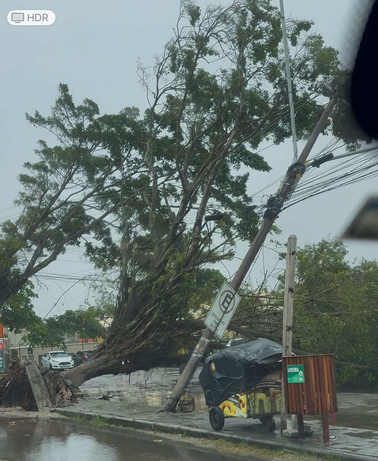 Equipes da prefeitura foram acionadas nas primeiras horas da manhã e já estão no local para fazer a remoção da árvore. A Neoenergia ainda não chegou para fazer a retirada do poste e a área foi parcialmente isolada para garantir a segurança de todos.