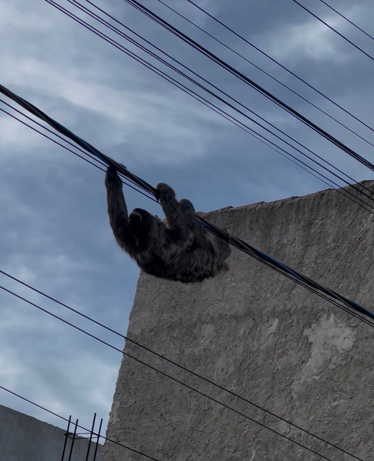 Na noite desta sexta-feira (27), policiais militares da Companhia Independente de Polícia de Proteção Ambiental (CIPPA) realizaram o resgate de um bicho-preguiça encontrado pendurado na rede de fiação elétrica, no bairro Mirante.