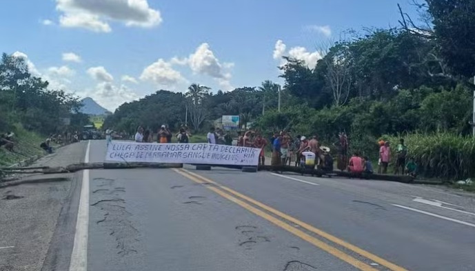 Desde a manhã de segunda-feira (7), cerca de 30 indígenas realizam um protesto com bloqueio da BR-101, no município de Itamaraju, localizado no extremo sul da Bahia. A mobilização tem como principal objetivo reivindicar a libertação de Welington Ribeiro de Oliveira, conhecido como cacique Suruí Pataxó, detido durante uma ação da Força Nacional de Segurança.