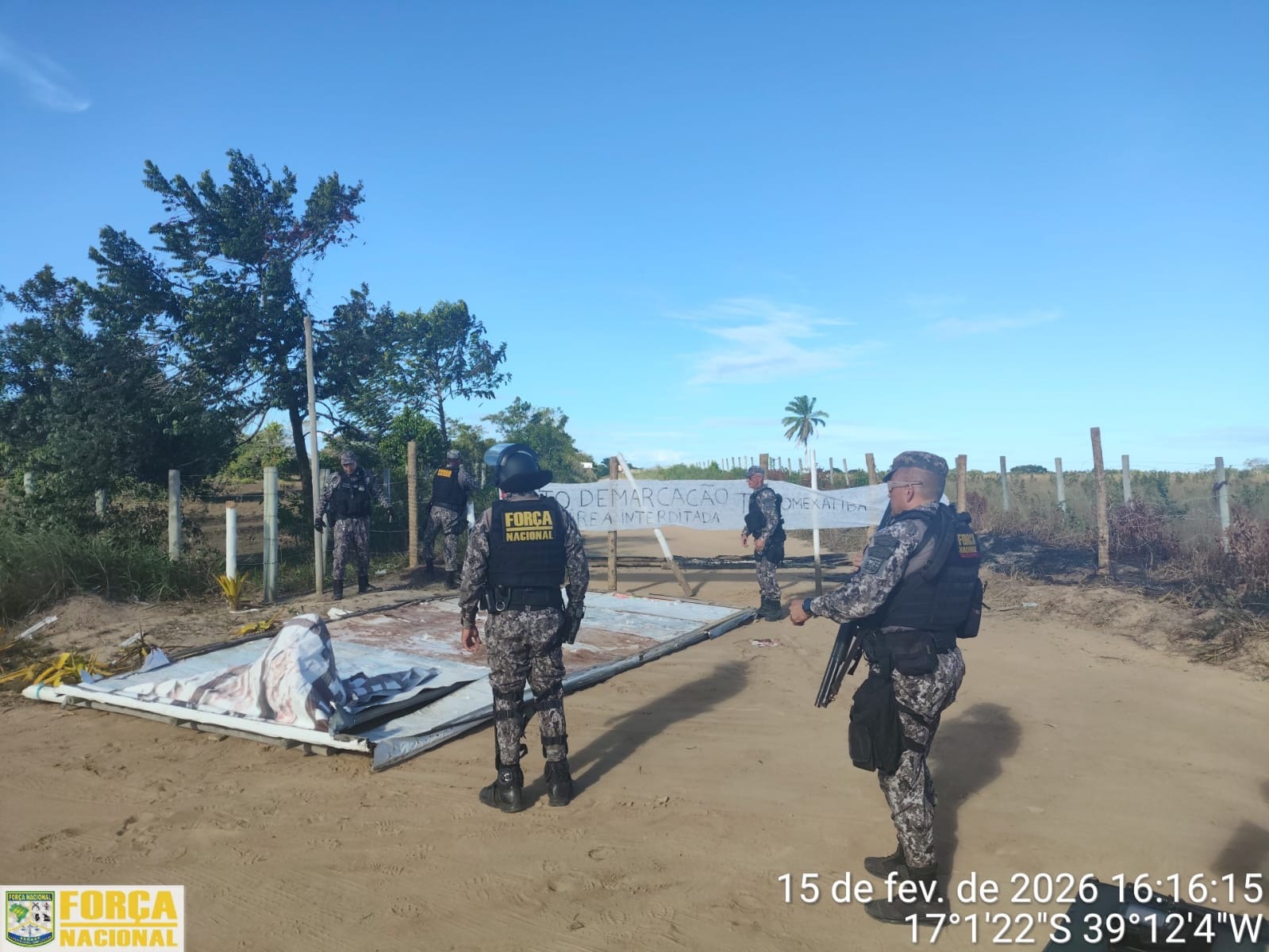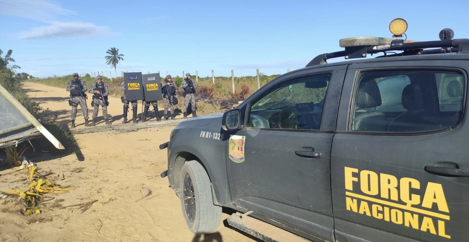 Neste domingo, (15), as Forças de Segurança do Extremo Sul da Bahia, por meio da Polícia Federal, da Força Nacional e da Força Integrada da PMBA, realizaram uma ação na região da Barra do Cahy, no município de Prado, com a finalidade de desobstruir os acessos que vinham sendo bloqueados ao longo da semana em conflitos por terras na região.