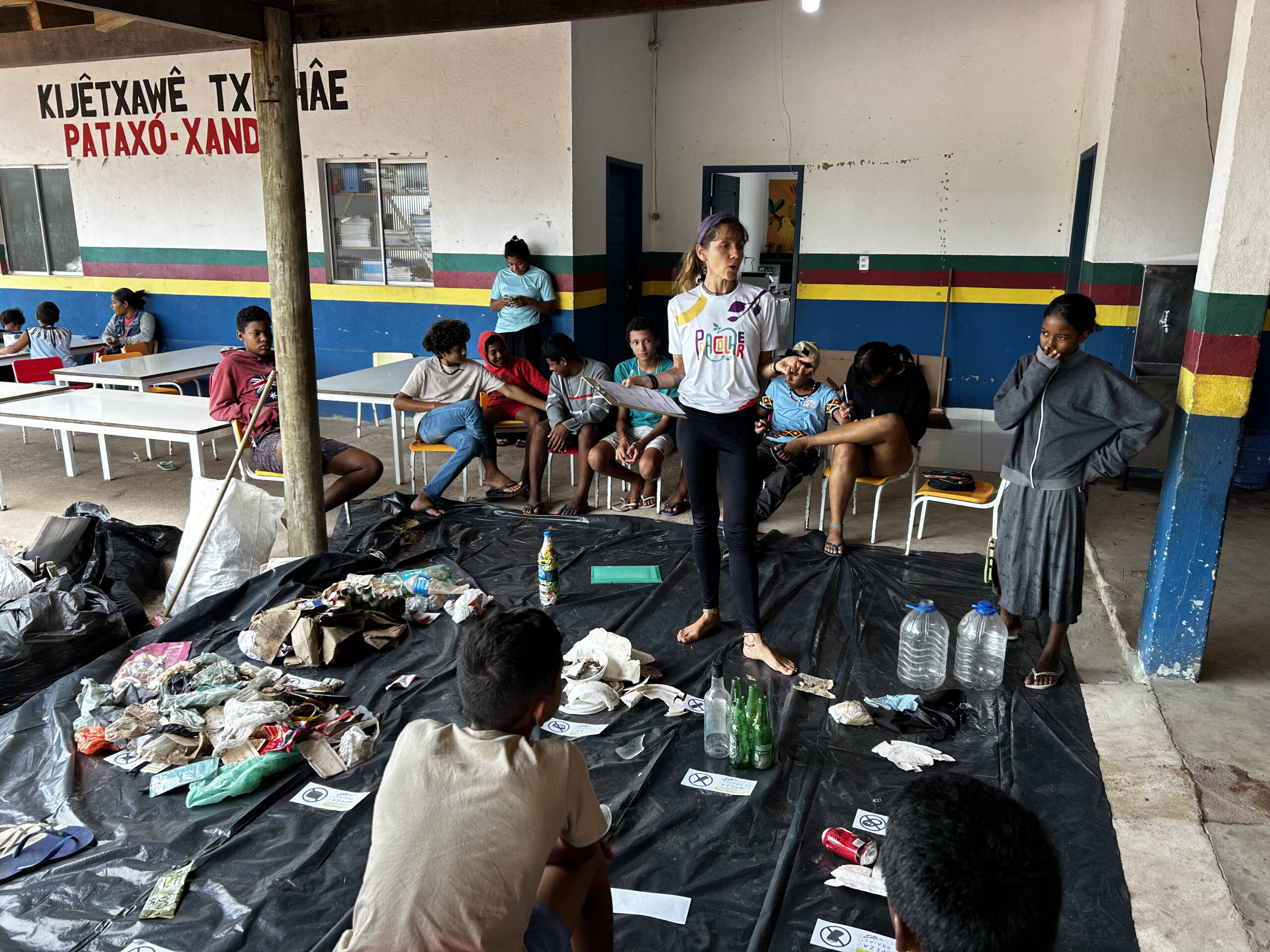 As atividades educativas incluíram leitura, escrita e criação de placas de sensibilização, integrando a educação ambiental ao currículo escolar. Este ano, com o apoio do projeto PraColher, a ação contou com a parceria de outras escolas locais, como a Escola Municipal Alegria do Saber, a Escola Municipal de Caraíva e a Escola Indígena Pataxó Xandó, promovendo atividades internas antes da coleta externa. As crianças participaram de todo o processo: da conscientização sobre os resíduos gerados dentro da escola à criação de líderes estudantis responsáveis por manter os espaços limpos.