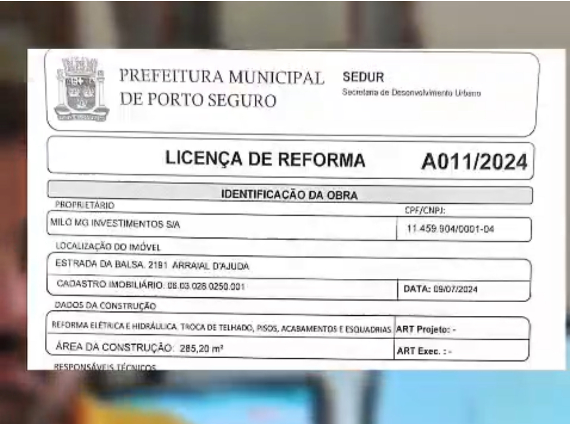 Em Arraial d’Ajuda, a denúncia de Prosdocimi extrapolou as redes sociais e se transformou em um caso formal. Procurado pela reportagem, o Instituto do Patrimônio Histórico e Artístico Nacional (IPHAN) confirmou a existência de irregularidades na obra. Estimativas do mercado imobiliário local apontam que o terreno, com cerca de 6 mil metros quadrados — dimensão semelhante à de um campo de futebol —, pode valer entre R$ 15 milhões e R$ 25 milhões, embora o valor oficial não tenha sido confirmado.