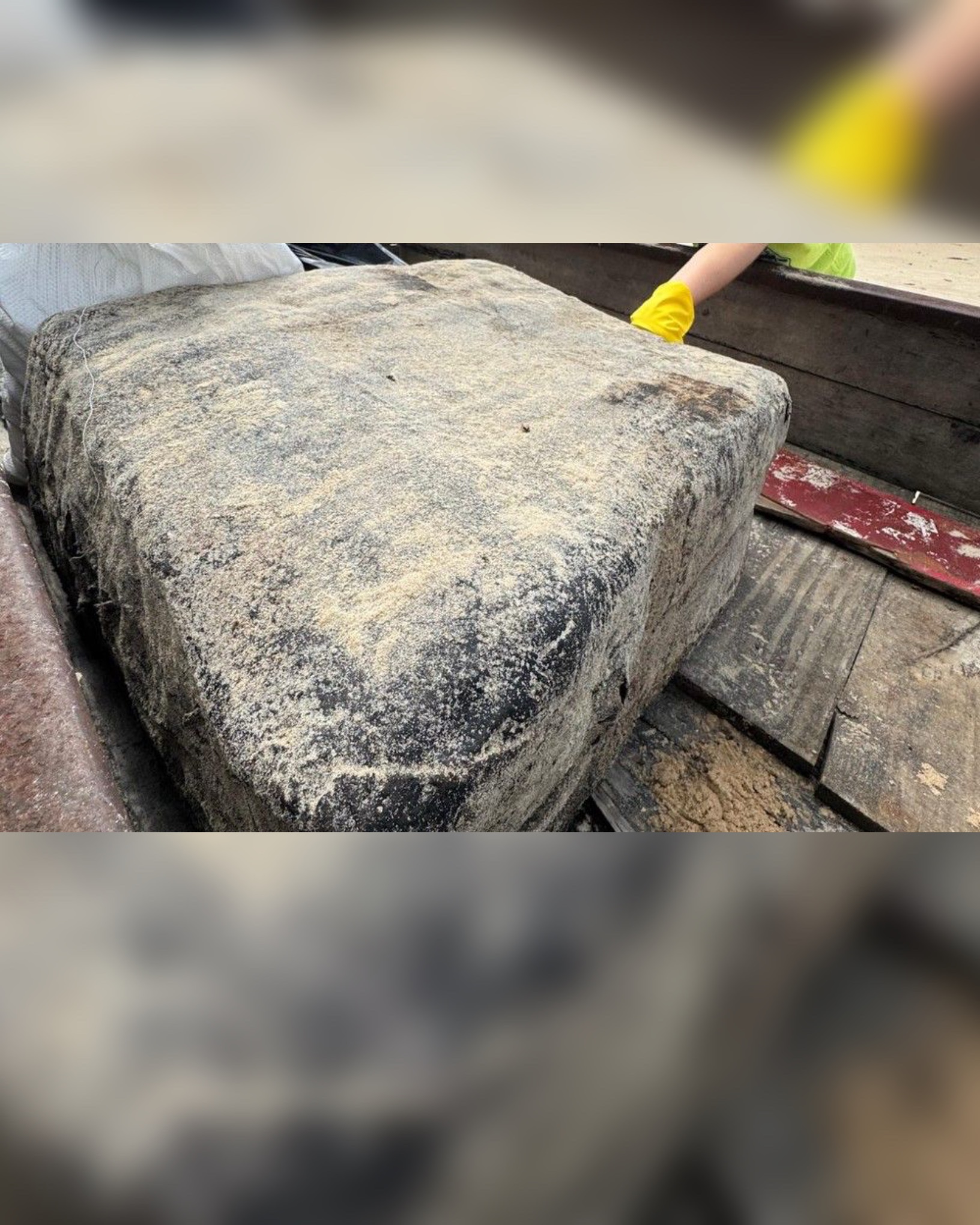 De acordo com o Projeto Coral Vivo — organização que atua na preservação ambiental da região — o bloco estava parcialmente soterrado na areia e foi localizado durante um mutirão de limpeza realizado por voluntários.