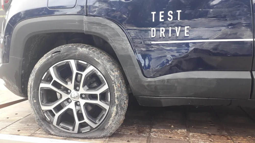 Um homem invadiu uma concessionária e furtou um veículo na cidade de Teixeira de Freitas, no sul da Bahia. Ele fugiu com o carro,mas foi alcançado pela Polícia Militar perto de sua residência, após perder o controle da direção, quando os pneus traseiros estouraram.