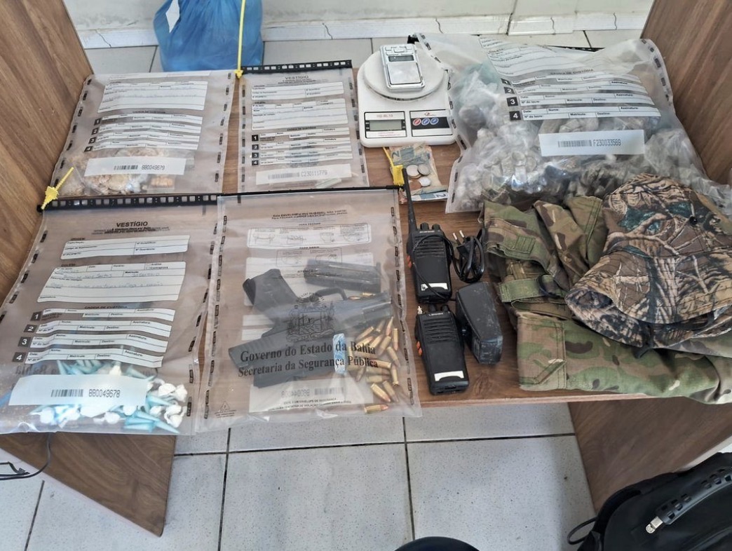Durante a ação, foram apreendidos entorpecentes — incluindo m@c0nh@, cr@ck e c0caín@ — além de uma pistola calibre 9 mm, munições, rádios comunicadores, balanças de precisão e dinheiro em espécie.