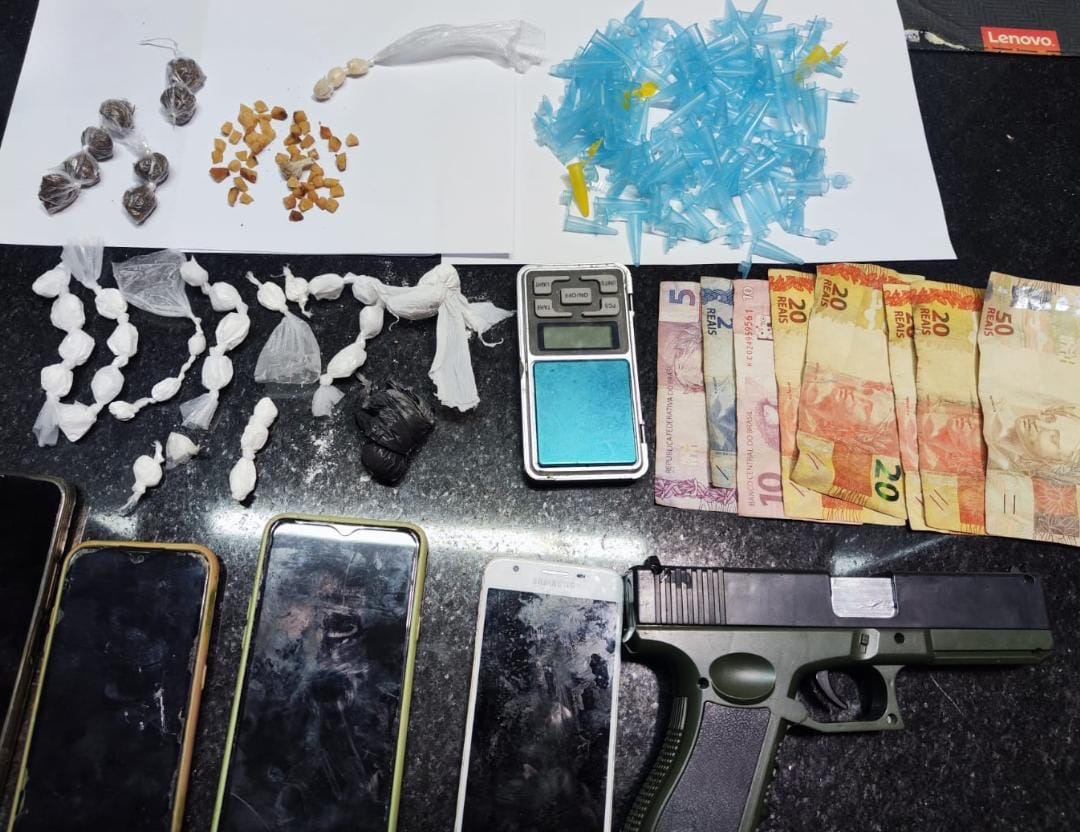 Uma ação da Polícia Militar da Bahia (PMBA) resultou na apreensão de uma grande quantidade de drogas e de um simulacro de arma de fogo na noite desta quinta-feira (23), em Eunápolis, no sul do estado.