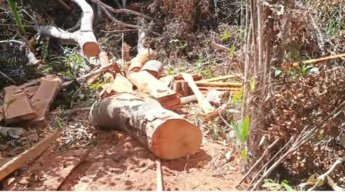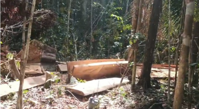 Uma equipe da Companhia Independente de Polícia de Proteção Ambiental Porto Seguro (CIPPA/PS) atendeu a uma denúncia de desmatamento no distrito de Santo André e flagrou dois homens derrubando árvores de espécies nativas. A guarnição, ao chegar no local, ouviu o som de uma motosserra e seguiu mata adentro até encontrar os infratores. No momento da abordagem, os homens estavam desfiando pranchas de madeira de árvores como Gendiba, Pequi e Aderno. A área de desmatamento apresentava, além do corte das árvores de grande porte, danos à vegetação de pequeno porte e a abertura de ramais para a retirada da madeira.