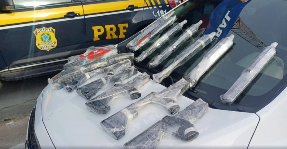 Os policiais acharam as armas em um compartimento dentro do painel do carro: sete fuzis calibre 5,56mm desmontados e 12 carregadores. O motorista disse que entregaria o armamento a uma facção criminosa do Rio com ramificação na Bahia.