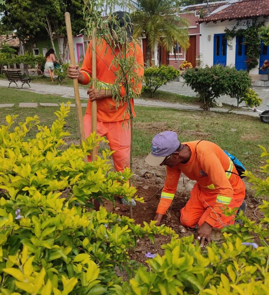 A ação aconteceu na Praça Brigadeiro Eduardo Gomes, popularmente conhecida como Praça da Igreja, um dos espaços mais simbólicos do distrito, e foi realizada pelas equipes da Secretaria Municipal do Litoral Sul.