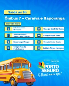 A Prefeitura de Porto Seguro vai oferecer transporte gratuito para os estudantes que farão o Exame Nacional do Ensino Médio (ENEM) nos dias 9 e 16 de novembro. A ação, realizada por meio da Secretaria Municipal de Educação, tem o objetivo de facilitar o deslocamento dos candidatos até os locais de prova.
